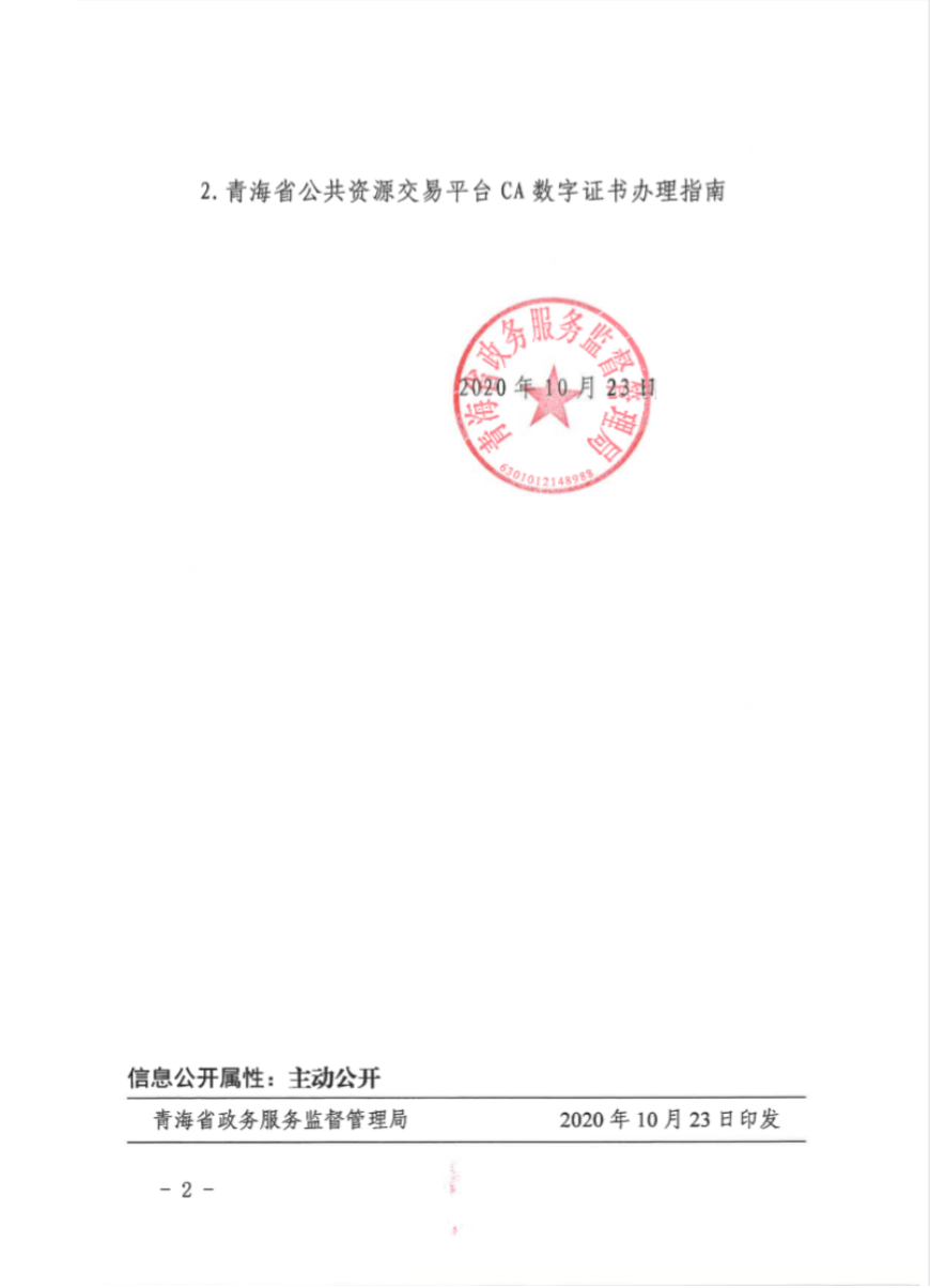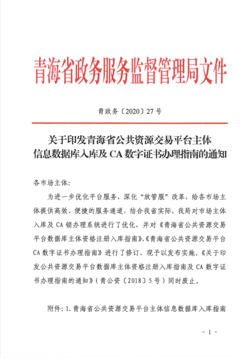 關(guān)于印發(fā)青海省公共資源交易平臺(tái)主體信息數(shù)據(jù)庫(kù)入庫(kù)及CA數(shù)字證書(shū)辦理指南的通知