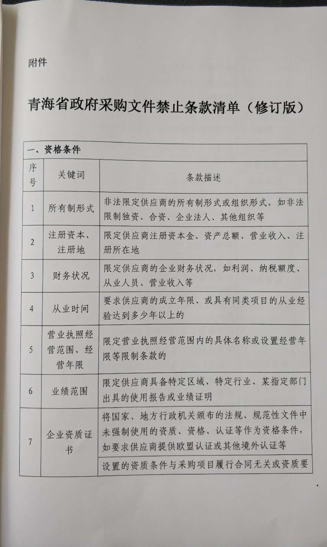 青海省財(cái)政廳關(guān)于印發(fā)《青海省政府采購(gòu)文件禁止條款清單(修訂版)》的通知