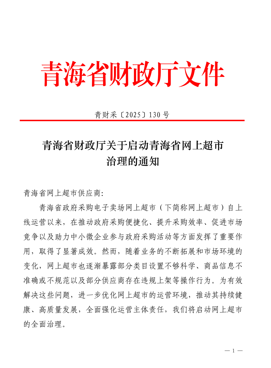 青海省財(cái)政廳關(guān)于啟動(dòng)青海省網(wǎng)上超市治理的通知